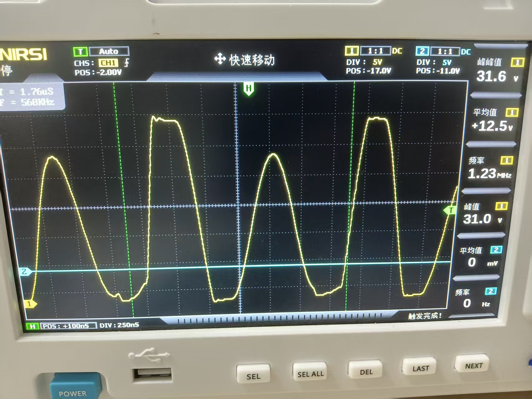 Thank you for your enthusiastic help. The voltage waveform in the second picture was hand-drawn by me on the drawing software and it is the voltage waveform measured by the actual product. It has shown a phenomenon of bottoming out. The input voltage is 12V and the power is 20W. The output voltage is 48V.