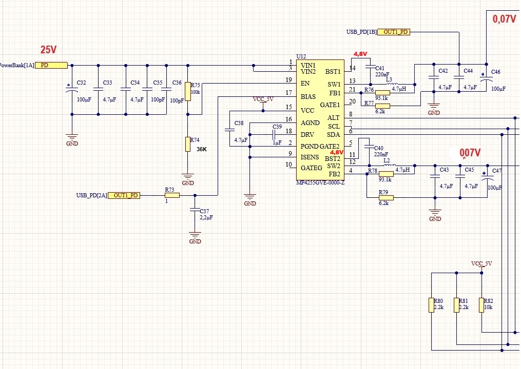 Hi. I cant start this devices. Vout both channels 0,07V in this configuration, Vcc=4,99V, Vin=25V, Iin=0,05A. My mp4255 is fake or wrong shematic ?
