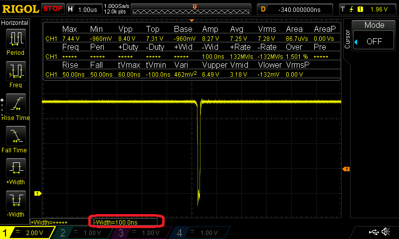 On the other hand, the maximum pulse, the minimum time it detects at zero, is only 100ns.