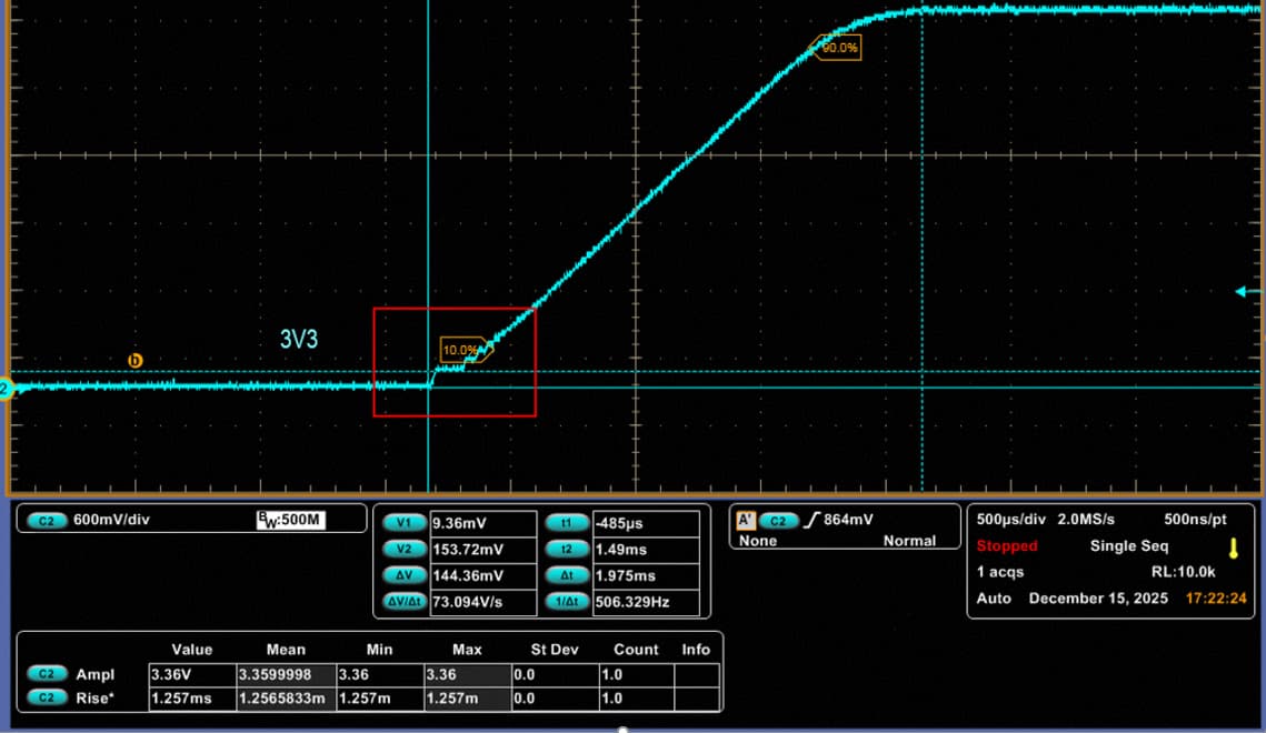 After investigation, it was found that the step-up stage is unrelated to the BOM of the DC-DC chip’s periphery. It is preliminarily suspected to be related to the DC-DC chip itself. We request clarification on the specific cause of the step-up issue and whether it can be optimized through loop adjustment or soft-start optimization.
