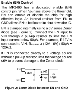 Here is the section on the datasheet regarding the EN pin for further reference.