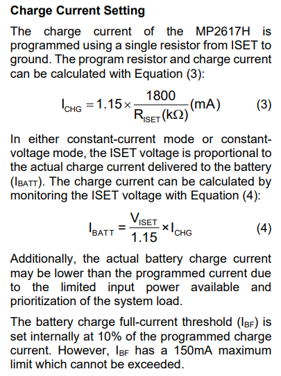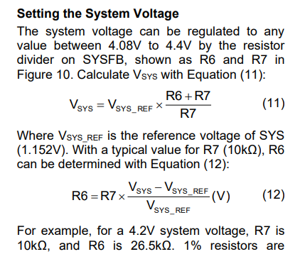 I am using the MP2617HGL-Z battery charger IC. According to the datasheet, setting a resistor divider of 28 kΩ (top) and 10 kΩ (bottom) should configure the regulation voltage to approximately 4.3 V.