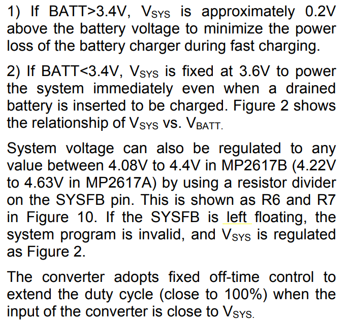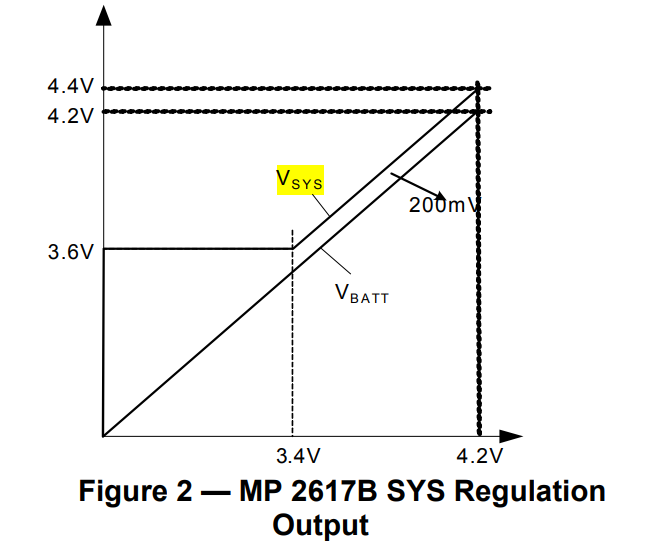 What is the SoC and voltage of the battery? Vsys is not completely a regulated voltage output. Vsys stays at 3.6V whenever Vbatt is equal or lower than 3.4V. Then Vsys follows Vbatt afterwards according to this.