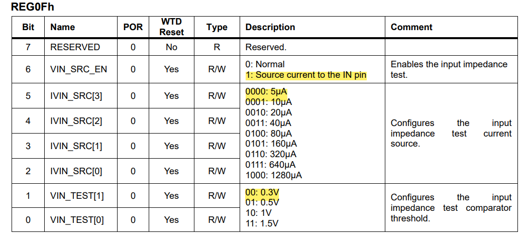 Currently using the MP2722 dev board and just wondering what i should set the registers IVIN_SRC and VIN_TEST if i want to test water detection.