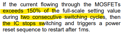 Thanks for contacting us. The overcurrent protection can go up to 13A, so it should be safe… However, it is not recommended to do so because running at 7A is close to trigger overcurrent protection. The switching frequency of this chip is 30k~300kHz, which means after about 33us of running 7.5A current, the IC will stop switching.