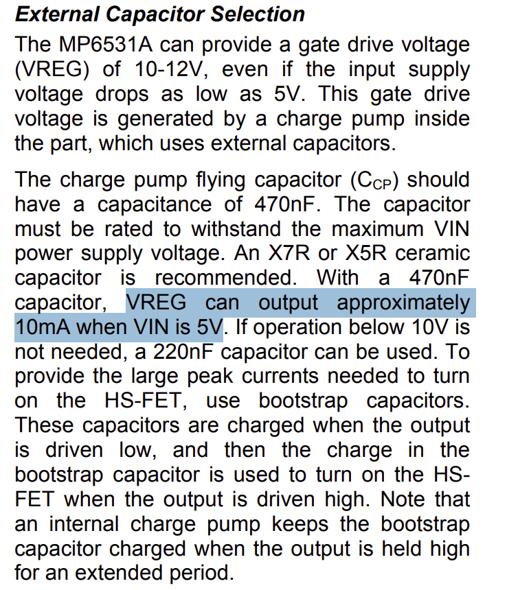 However, the datasheet does not appear to specify the allowable output current for this supply. Could you please let me know how much current (in amperes) can be drawn from the VREG output? If available, please provide both continuous and peak current ratings, as well as any recommended operating limits or thermal considerations.