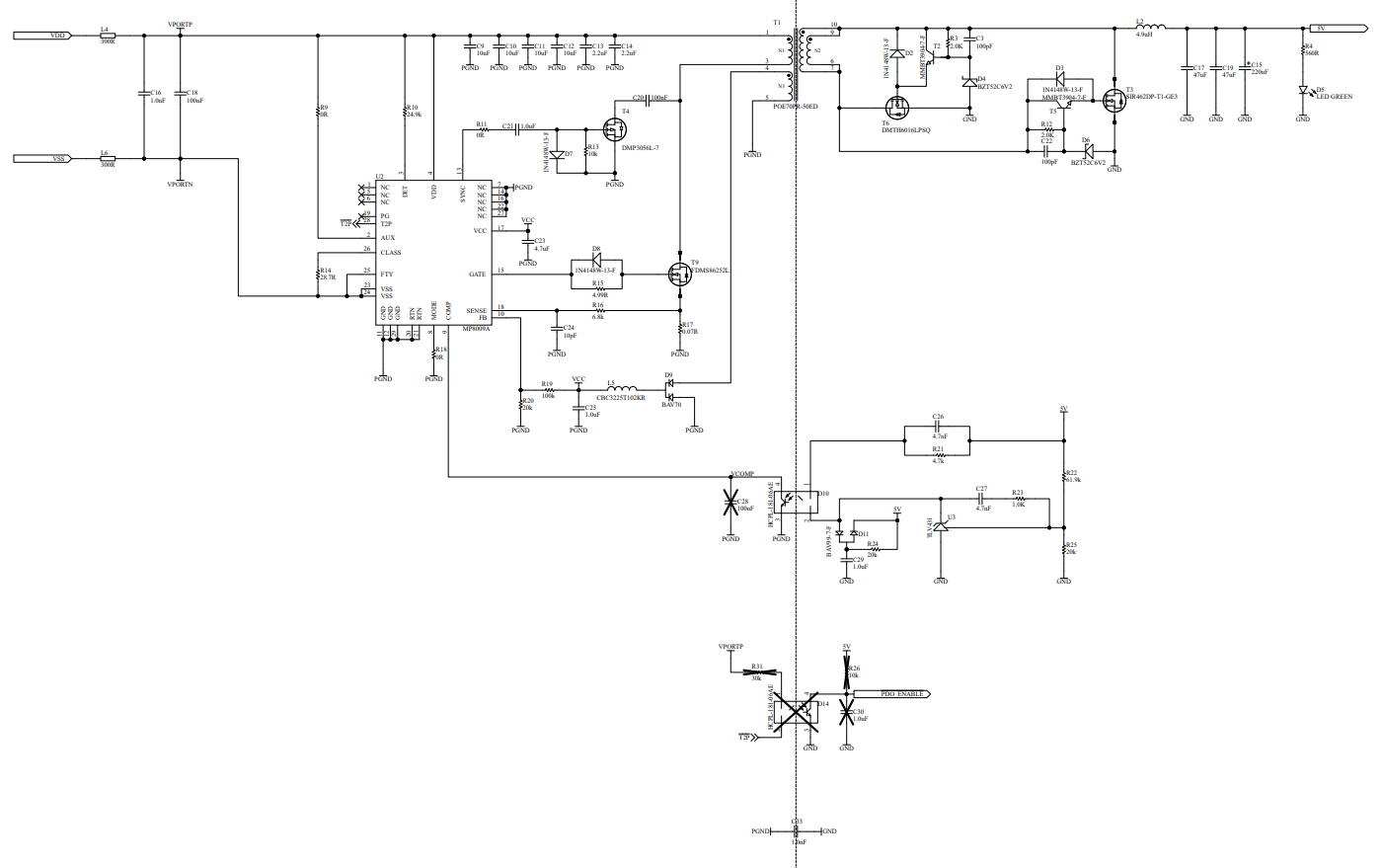 I have integrated the MP8009a in an SSR forward topology. The circuit was based entirely on the example typical application from the datasheet. However, I am not able to obtain the 5V output on secondary side.