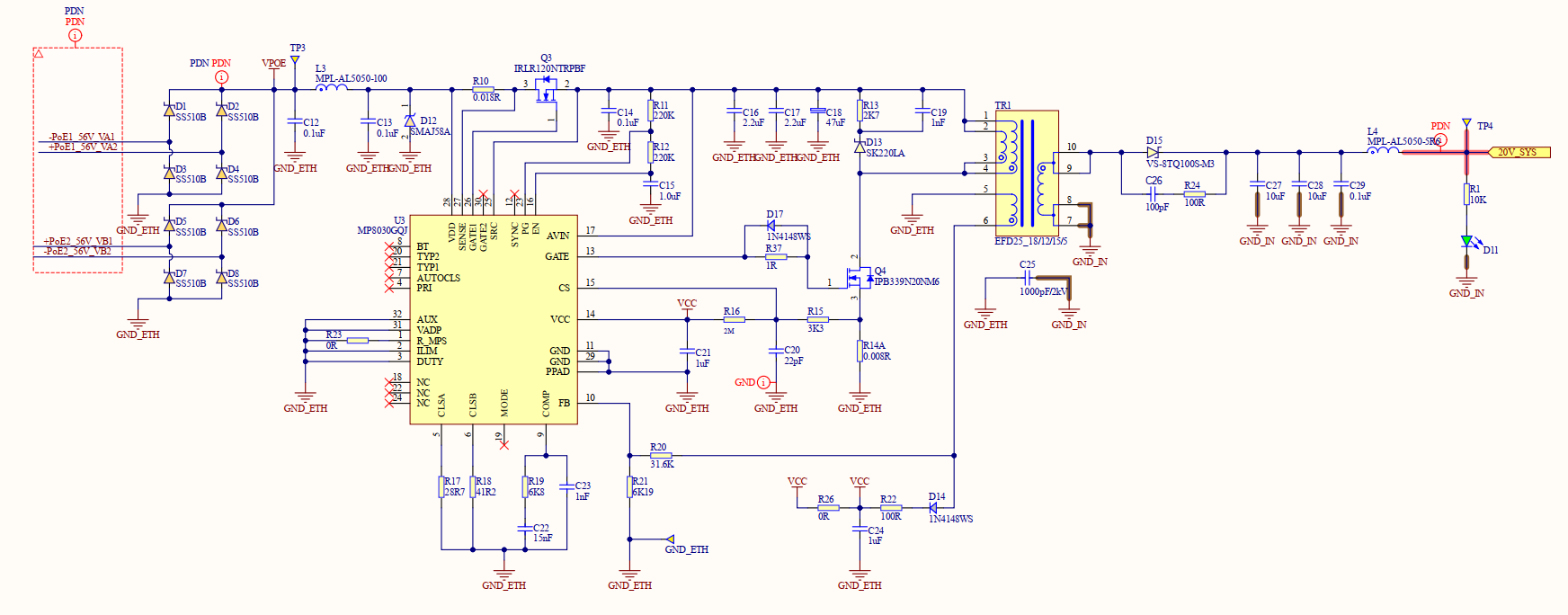 I am using part number: MP8030GQJ to create a POE circuit, based on fly-back architecture.