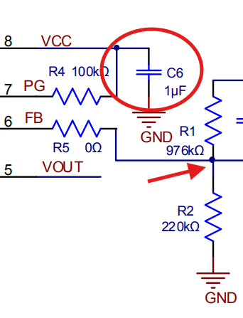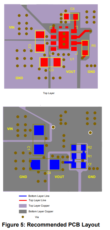 - Secondly, the 0 ohm resistor must be connected to the junction of the two feedback resistors, currently in your design it is connected to Vout rail. Kindly correct this as shown in our EVB datasheet for this part. I missed this before.