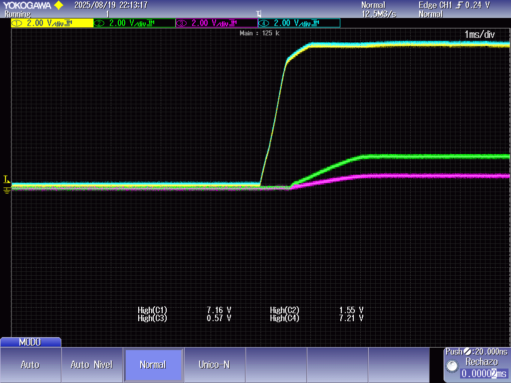 Hi, I have a problem with MPM3612 layout and I don’t know how fix it. I have 7,4V to 9V for input and I want 5V to output. I use R1=1613k and R2=220k to configure output and use a 22pF capacitor to stable Vf as schematic examples. But nothing works. To discard soldering and footprint issues, I test it with version MPM3612-33 that has same footprint and without divisor resistors and it works perfectly. Vout has 3,3V as MPM3612-33 says in datasheet.