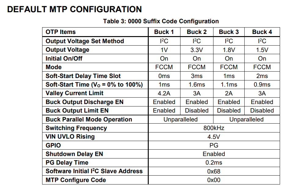 I see you are currently using a 0000 suffix code for MPM54304. In this case, by default they are set, if you refer the page 42 of the datasheet.
