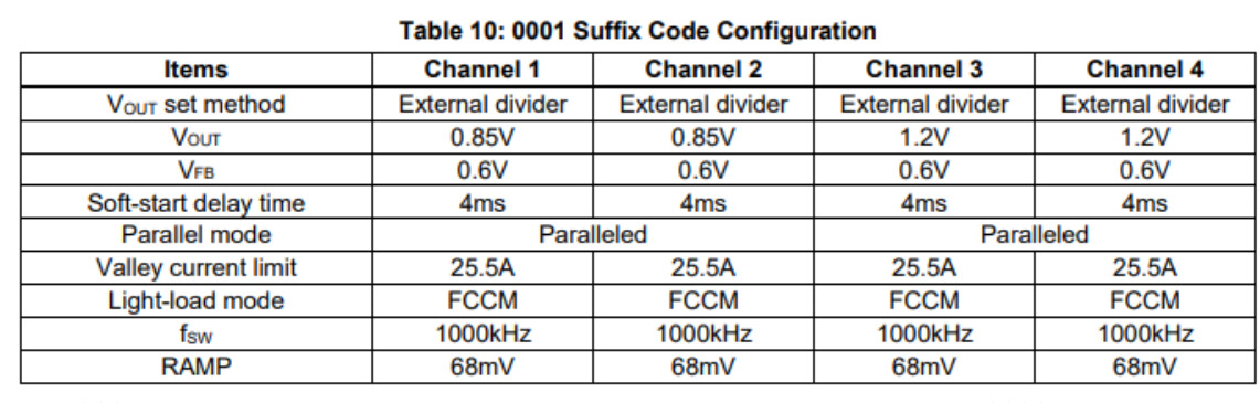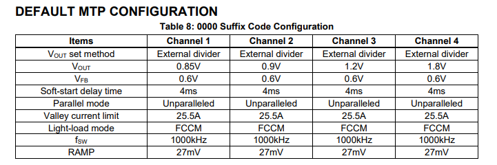 Query-1: Regarding the suffix code 0000 Part, the table shows VOUT can be set by external divider but it also shows fixed VOUT values of 0.85V, 0.9V, 1.2V and 1.8V. So i am confused whether these are fixed outputs or can i change it using external voltage divider ?
