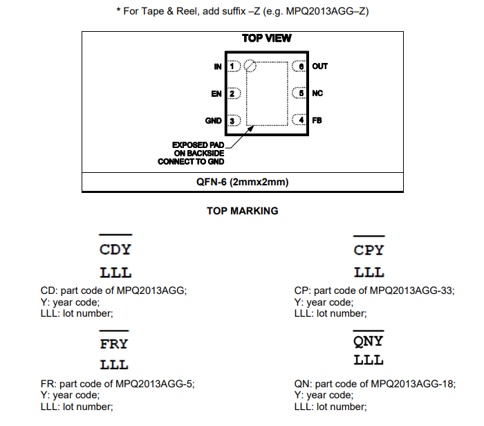 Can you verify that the top marking on the MPQ2013AGG is denoted with “CD" ?