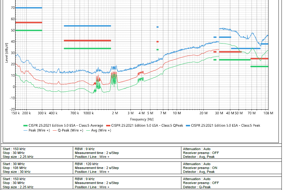We are currently performing CISPR25 Class 5 conducted emission testing on our DUT and observed some emission concerns that we would like your guidance.