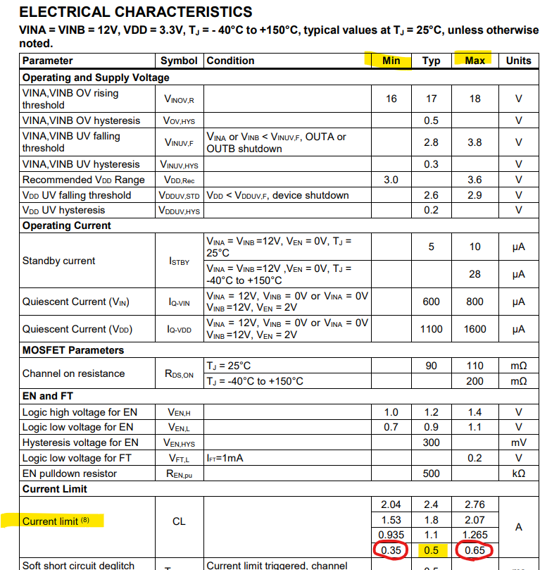 I see in the electrical characteristics part for current limit value of 0.5A → there is a MIN value of 0.35A and a MAX value of 0.65A. What is the meaning of these MIN and MAX values? Why there is such a BIG range from 0.35A to 0.65A?