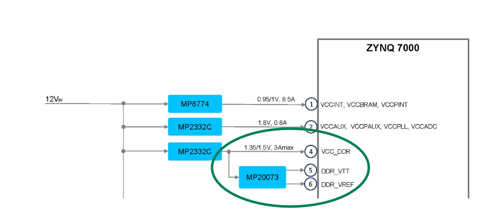 MP20073 can support this as well, please refer to the below diagram, where AMD’s Zynq 7000 uses MP20073 for powering their VTT rail.