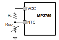 Since there are faults that can be triggered at the NTC pin, you will still need to connect resistors to NTC even if you aren’t using it. Use a resistive divider from VCC to NTC, then NTC to GND like the image below. The resistors’ values can both be 1Mohm or larger to satisfy this requirement.