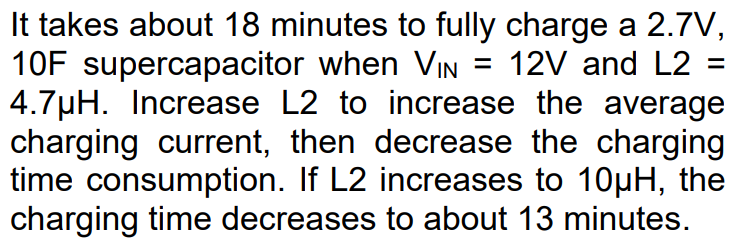 We are looking at using this device in a new design and are trying to size the capacitor. The input voltage is 12V in our case and need an output voltage of 5V. The Supercapacitor needs to supply enough energy to provide the 5V output for about 2-3 seconds at 70mA when input power is lost.