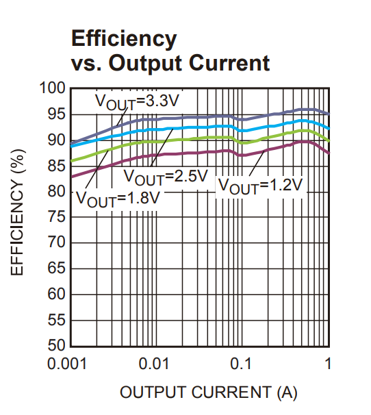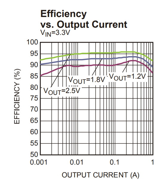 I see, since you have Vin = 5V and Vout = 3.3V, then this is the efficiency plot you will want to pay attention to (where 3.3V yields the highest efficiency, less deltaV means less work for the converter):